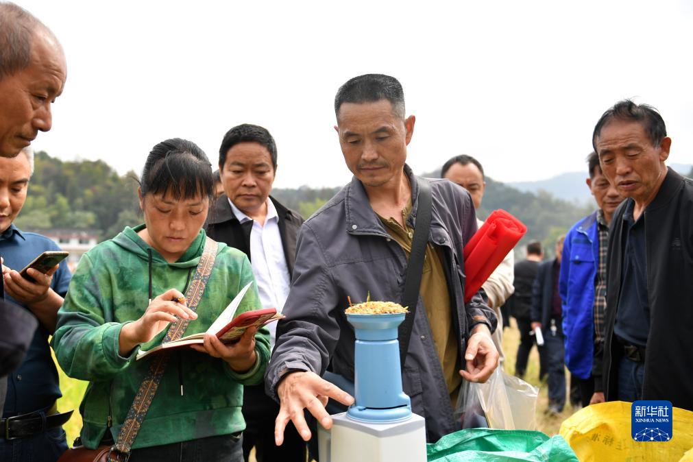 10月28日,湖南省婁底市雙峰縣“稻再油”示范片組織再生稻(再生季)現(xiàn)場評議與測產(chǎn)。“稻再油”即種植一季水稻、一季再生稻、一季冬季油菜。“稻再油”模式進一步提高了土地利用率,實現(xiàn)“一田三收”,在光溫資源“兩季不足、一季有余”的地區(qū)有助于促進糧油增產(chǎn),拓寬增收渠道。