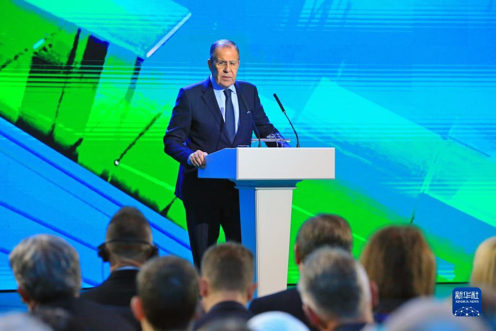 10月26日,俄羅斯外長拉夫羅夫在白俄羅斯首都明斯克舉行的“歐亞安全:轉型世界的現實與前景”高級別國際會議上發言。