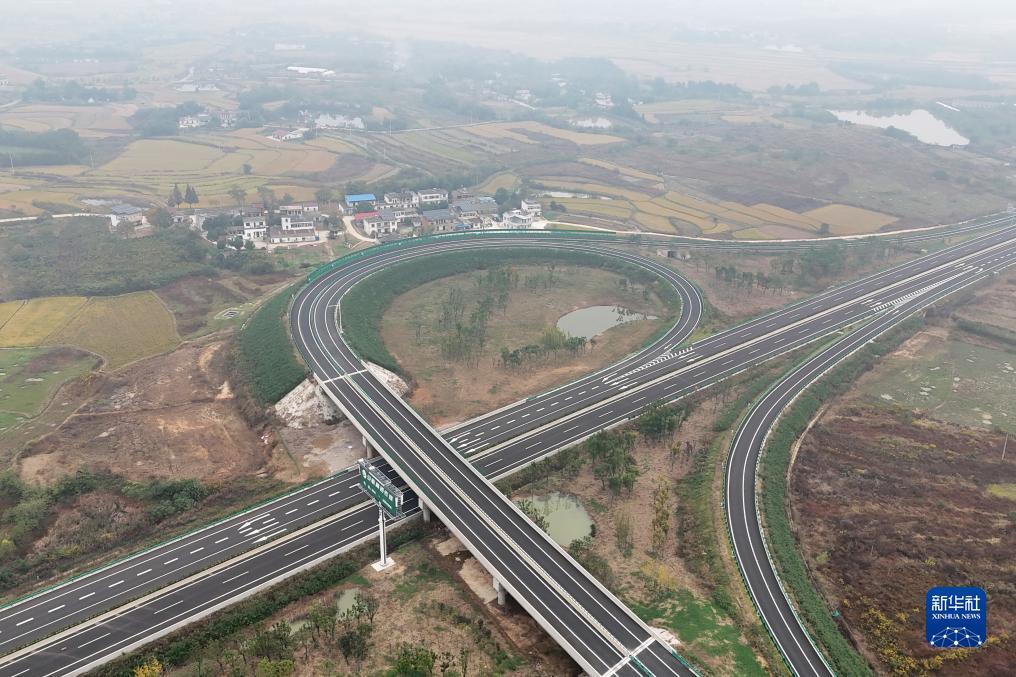 這是10月28日拍攝的無為至岳西高速公路廬江北互通(無人機照片)。