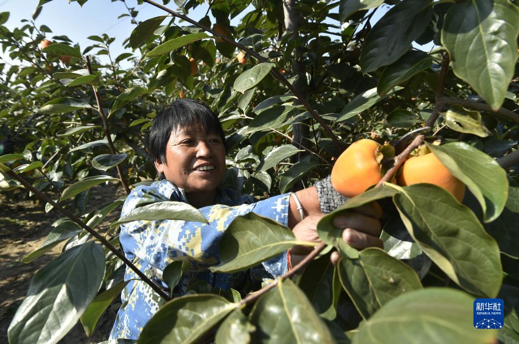 10月28日,村民在禹州市磨街鄉劉門村的柿園里采摘柿子。