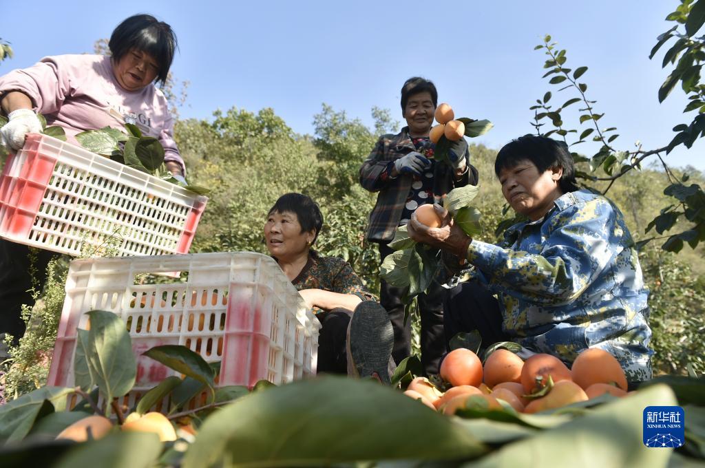 10月28日,村民在禹州市磨街鄉劉門村的柿園里整理剛采摘的柿子。