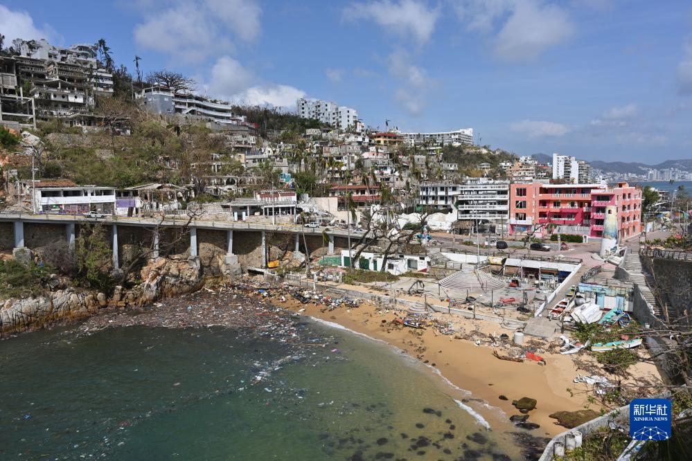 這是10月27日在墨西哥格雷羅州阿卡普爾科拍攝的被颶風“奧蒂斯”損壞的海灘。