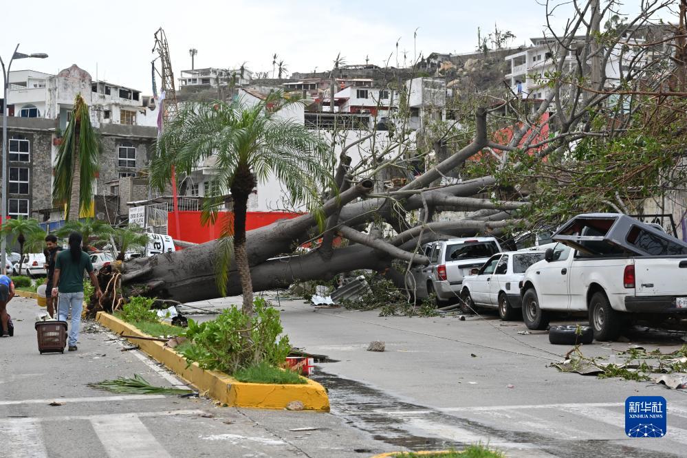 這是10月25日在墨西哥格雷羅州阿卡普爾科拍攝的被颶風“奧蒂斯”損壞的樹木。