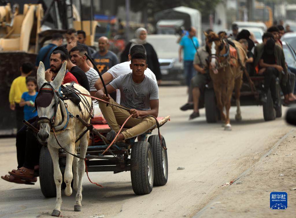 10月29日,因缺乏燃料,人們在加沙地帶南部城市汗尤尼斯使用驢車出行。