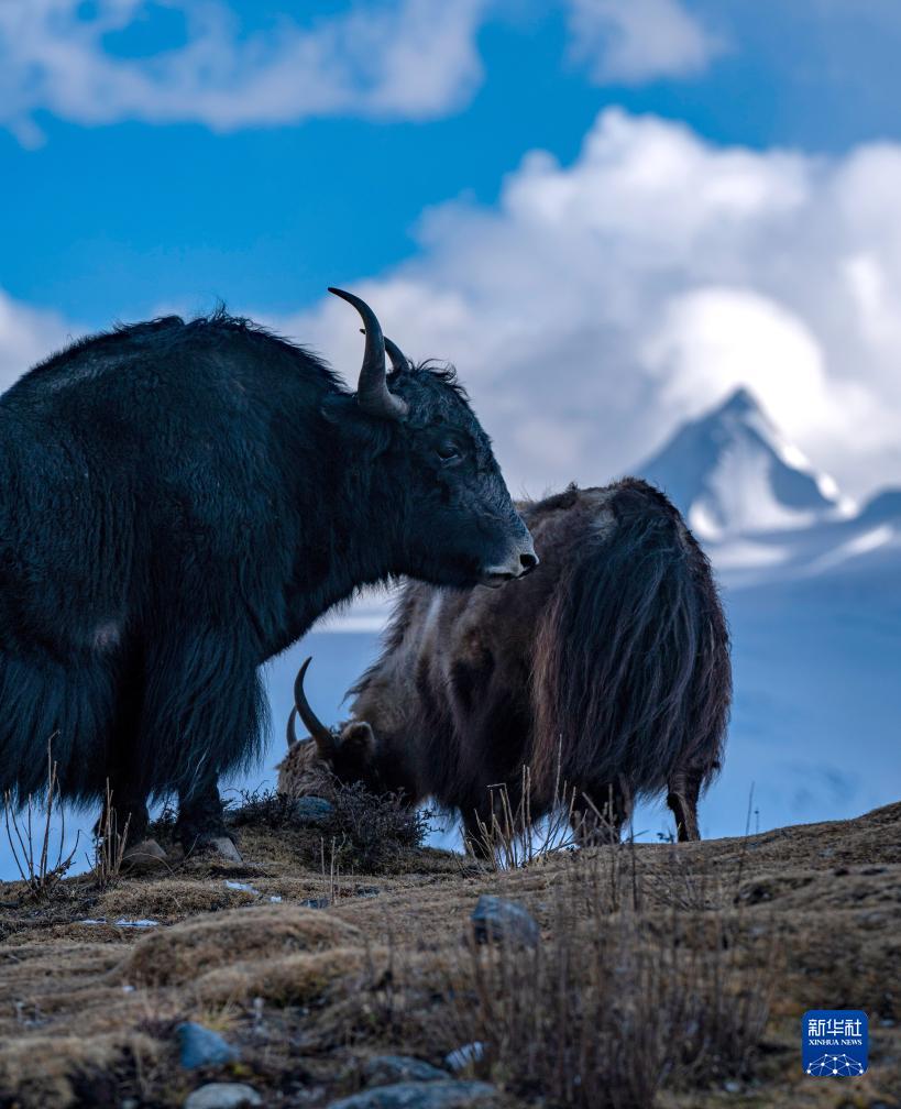 牦牛在薩普雪山腳下的草場上吃草(10月28日攝)。