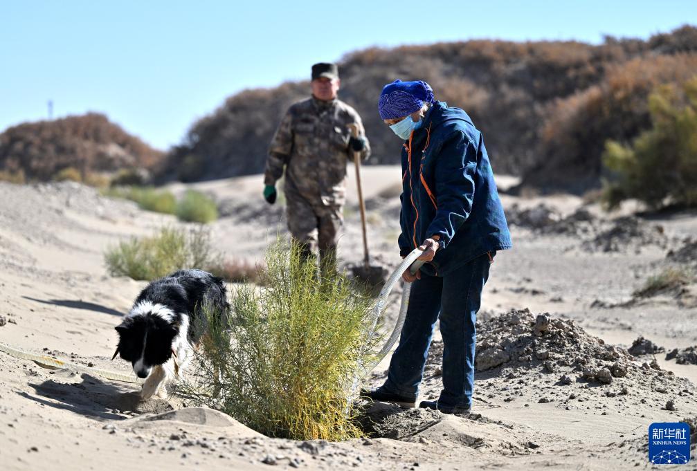 10月28日,德力格給梭梭樹(shù)澆水。