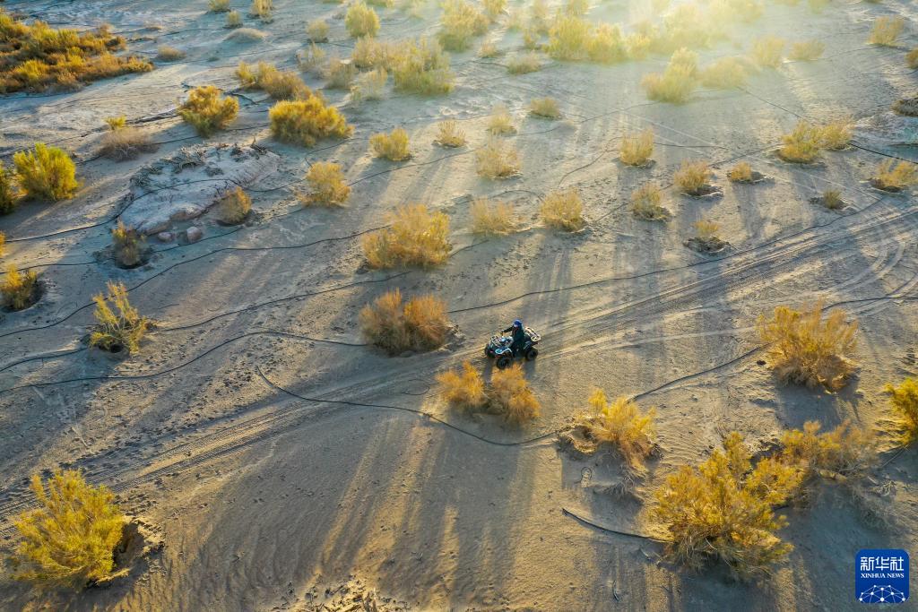 德力格在巡護(hù)梭梭林(無人機(jī)照片,10月27日攝)。