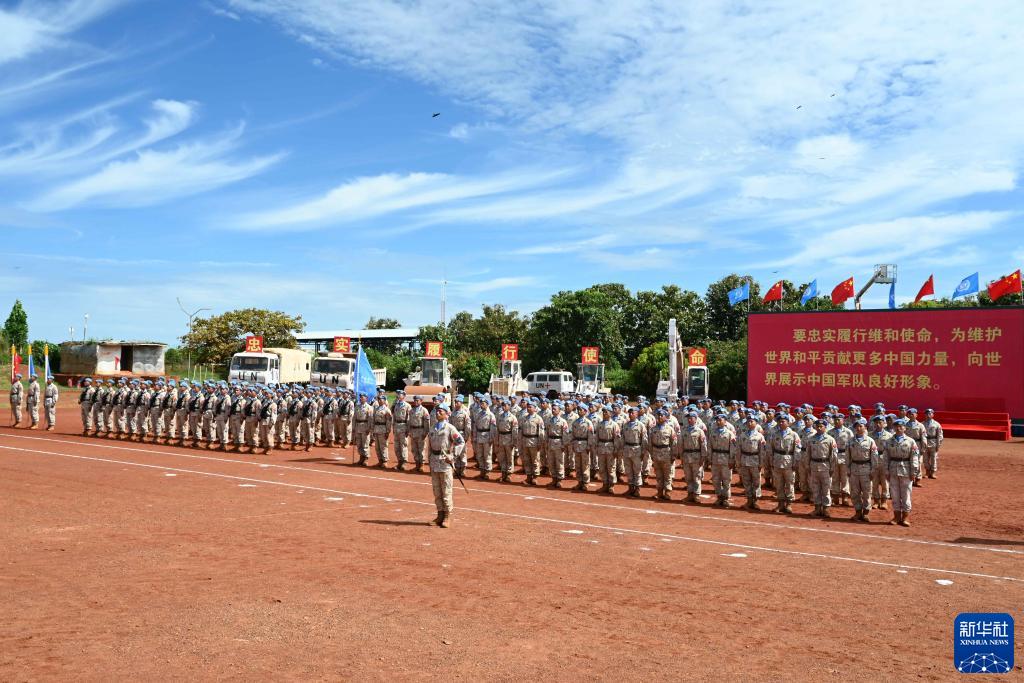 10月28日,在聯(lián)合國駐南蘇丹特派團(tuán)瓦烏超級營地的中國工兵營區(qū),維和工兵和醫(yī)療分隊(duì)的官兵在授勛儀式現(xiàn)場列隊(duì)。