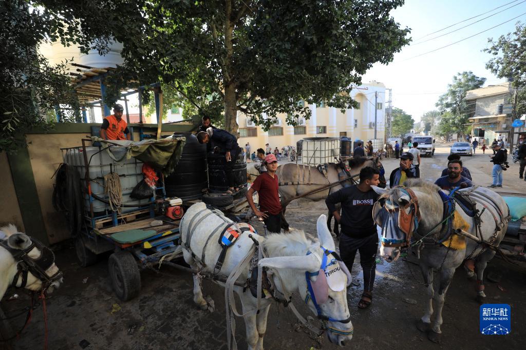 10月30日,因缺乏燃料,人們?cè)诩由车貛喜砍鞘泻褂饶崴故褂眯罅囘\(yùn)輸飲用水。
