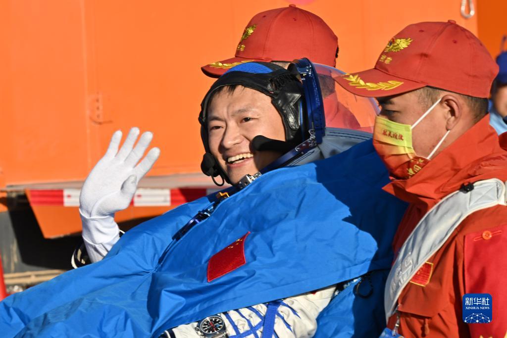 10月31日,神舟十六號載人飛船返回艙在東風著陸場成功著陸。這是航天員桂海潮安全順利出艙。
