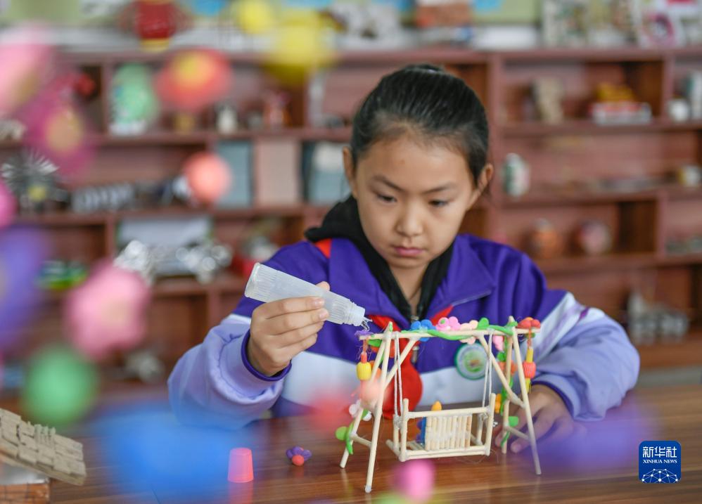 10月31日,河北省遵化市東舊寨鎮(zhèn)梁屯中心小學的學生利用廢棄物品做飾品。