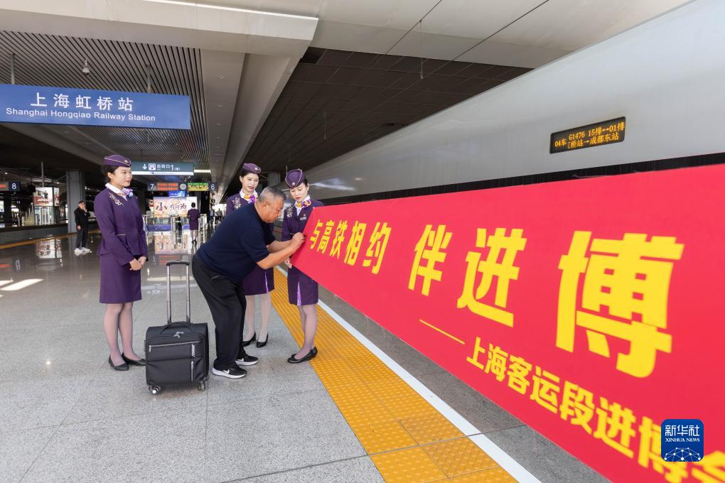 第六屆中國國際進(jìn)口博覽會開幕在即,鐵路上海客運(yùn)段開展“與高鐵相約 伴進(jìn)博同行”主題活動,向旅客介紹進(jìn)博會亮點(diǎn),邀請旅客一起為進(jìn)博會送上祝福。