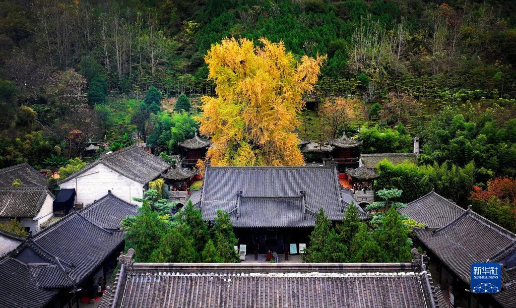 深秋時(shí)節(jié),陜西省西安市長(zhǎng)安區(qū)終南山古觀音禪寺內(nèi)的千年銀杏滿目金黃,吸引游客參觀游覽。