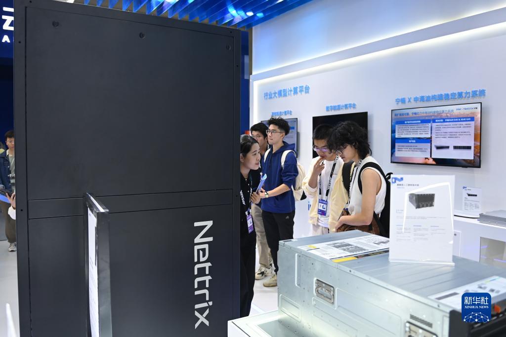 10月31日,觀眾在“算力”展館了解一款整機柜服務器產品。