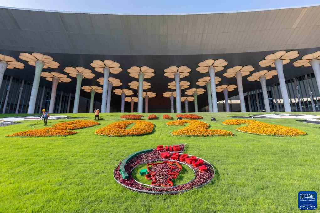 第六屆中國國際進口博覽會即將在上海舉行,國家會展中心(上海)裝點一新,迎接八方客商。