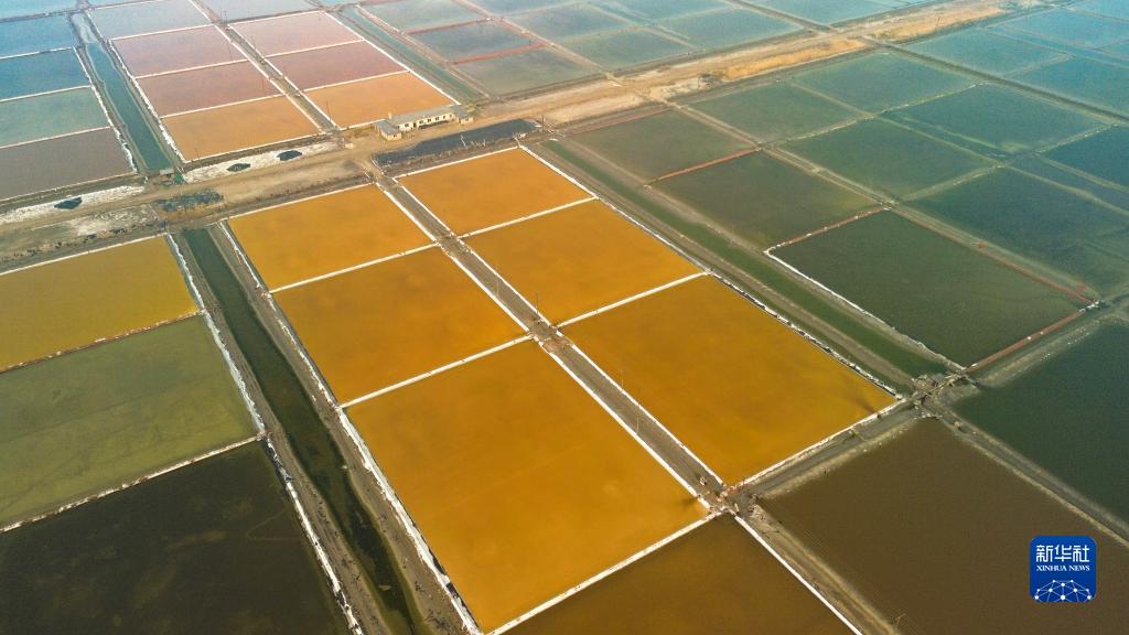 深秋時節,遼寧省營口市老邊區的鹽田色彩斑斕,宛如大地的調色板,美不勝收。