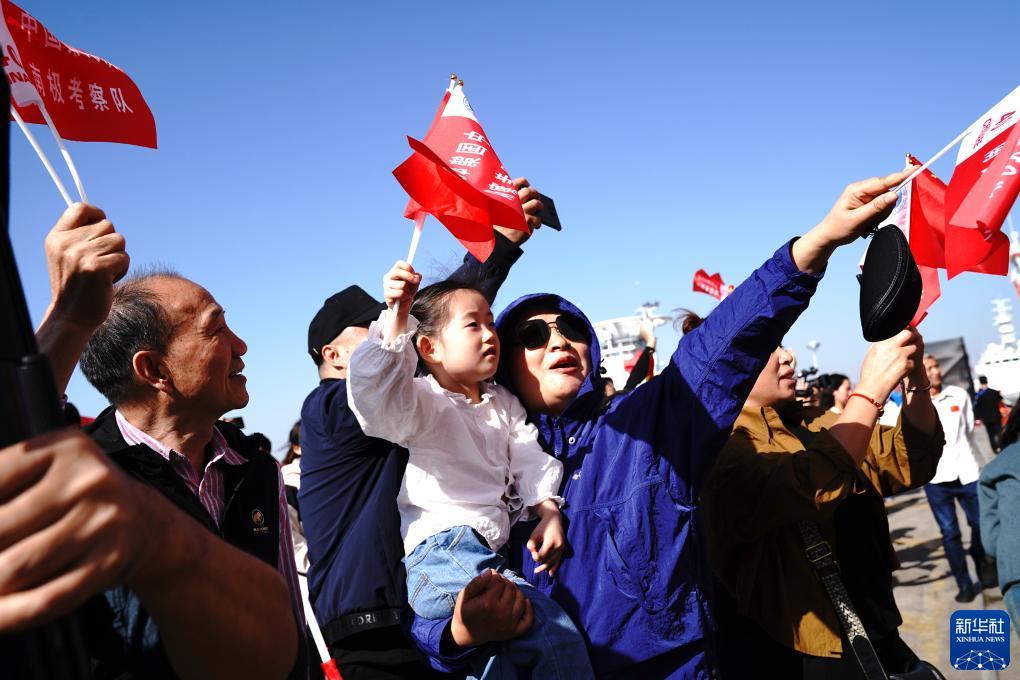 11月1日,在中國極地考察國內基地碼頭,人們歡送中國第40次南極科學考察隊出征。