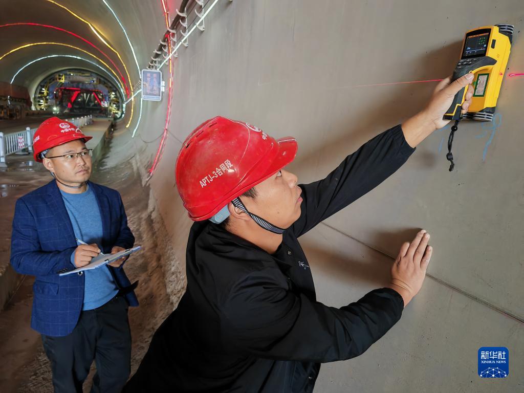 11月1日,工作人員正在雞冠山隧道內檢測隧道壁厚度。