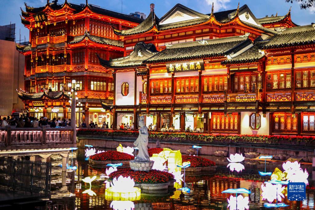 這是10月11日在上海豫園九曲橋上拍攝的景色。