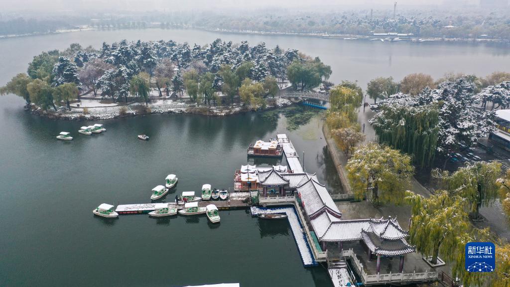 11月1日拍攝的長(zhǎng)春市南湖公園雪景(無(wú)人機(jī)照片)。