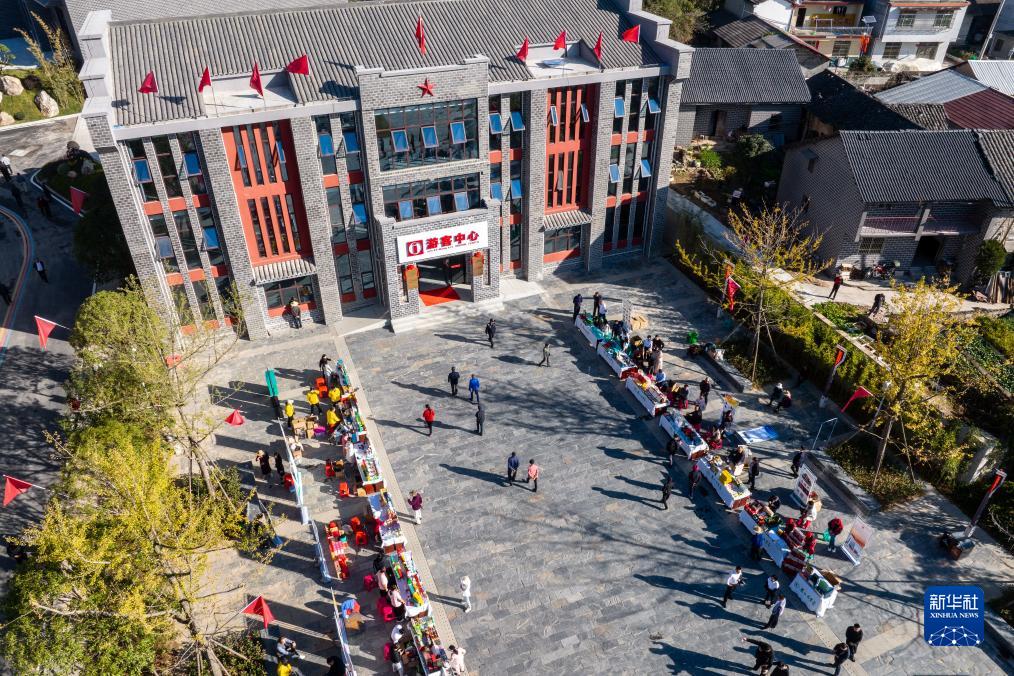 11月1日拍攝的長征國家文化公園英山園區游客中心(無人機照片)。