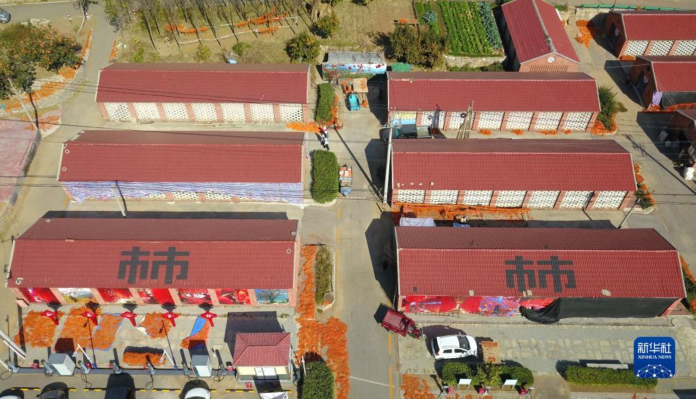 11月1日,在山東省濰坊市臨朐縣五井鎮(zhèn),村民在晾曬柿子(無(wú)人機(jī)照片)。