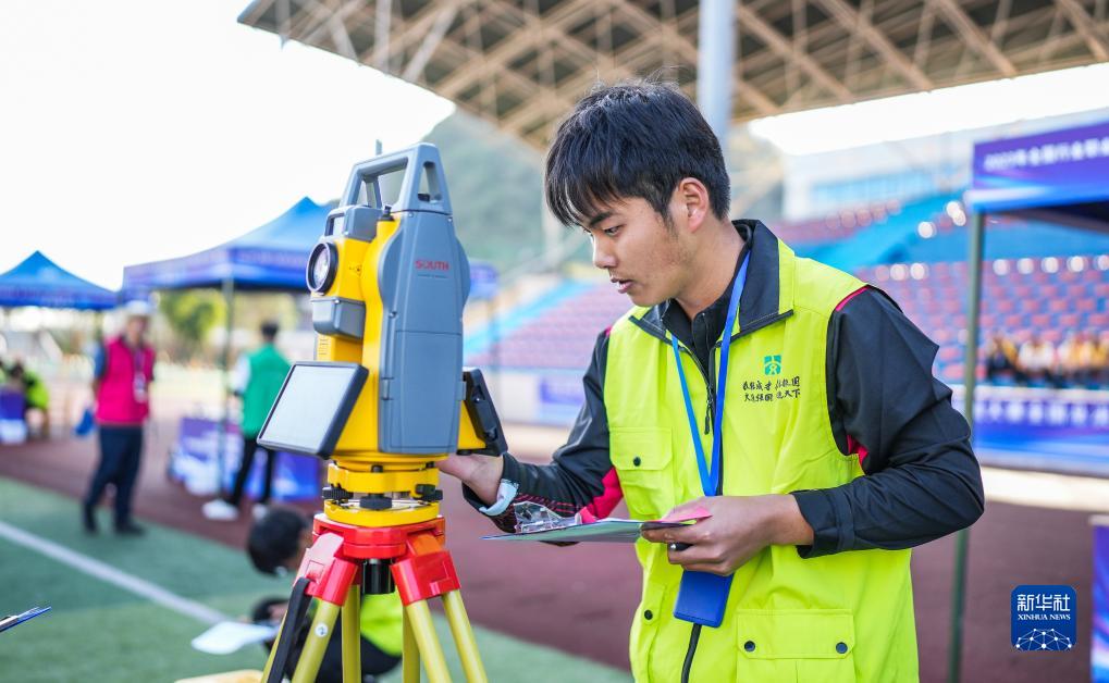 11月1日,選手參加施工放樣項(xiàng)目比賽。