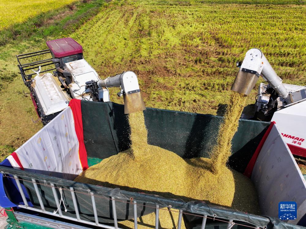 近日,湖南省瀏陽市農(nóng)業(yè)大鎮(zhèn)龍伏鎮(zhèn)種植的晚稻進(jìn)入成熟收割階段,當(dāng)?shù)剡\(yùn)用智能化機(jī)械設(shè)備展開作業(yè),助力秋糧顆粒歸倉。