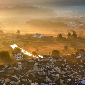 11月1日在安徽省黃山市黟縣宏村鎮盧村拍攝的秋景(無人機照片)。