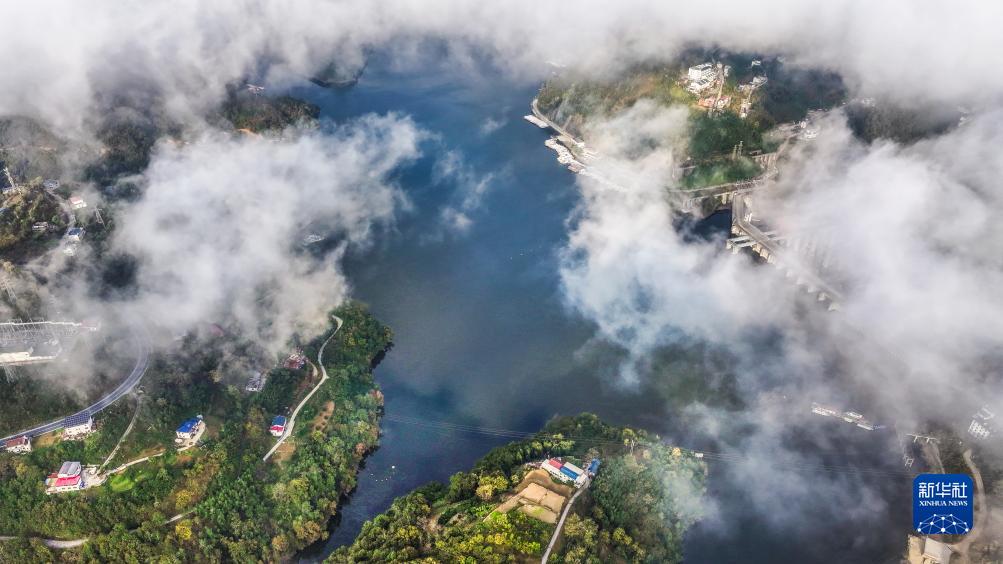11月1日拍攝的陜西安康瀛湖景區(qū)秋景(無人機照片)。