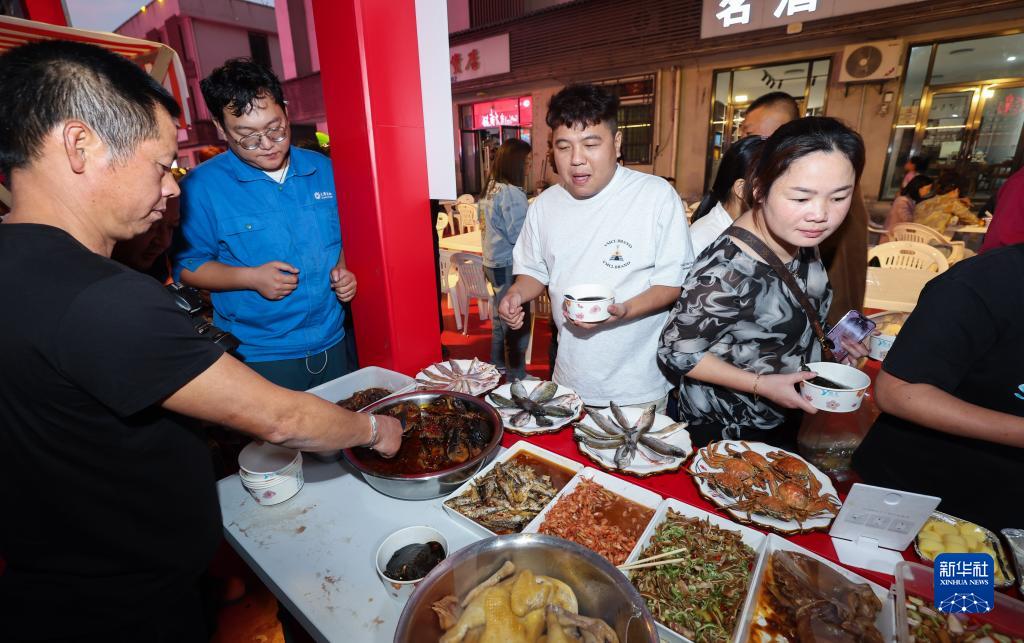 11月1日,人們在建德市大洋鎮江鮮節活動中品嘗特色美食。