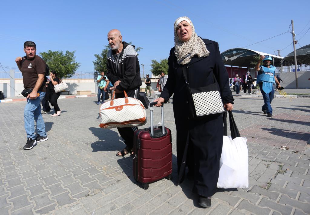 11月1日,人們在拉法口岸加沙一側準備前往埃及。
