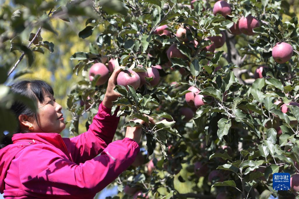10月31日,果農在甘肅省永靖縣峴塬鎮劉家村果園里采摘蘋果。