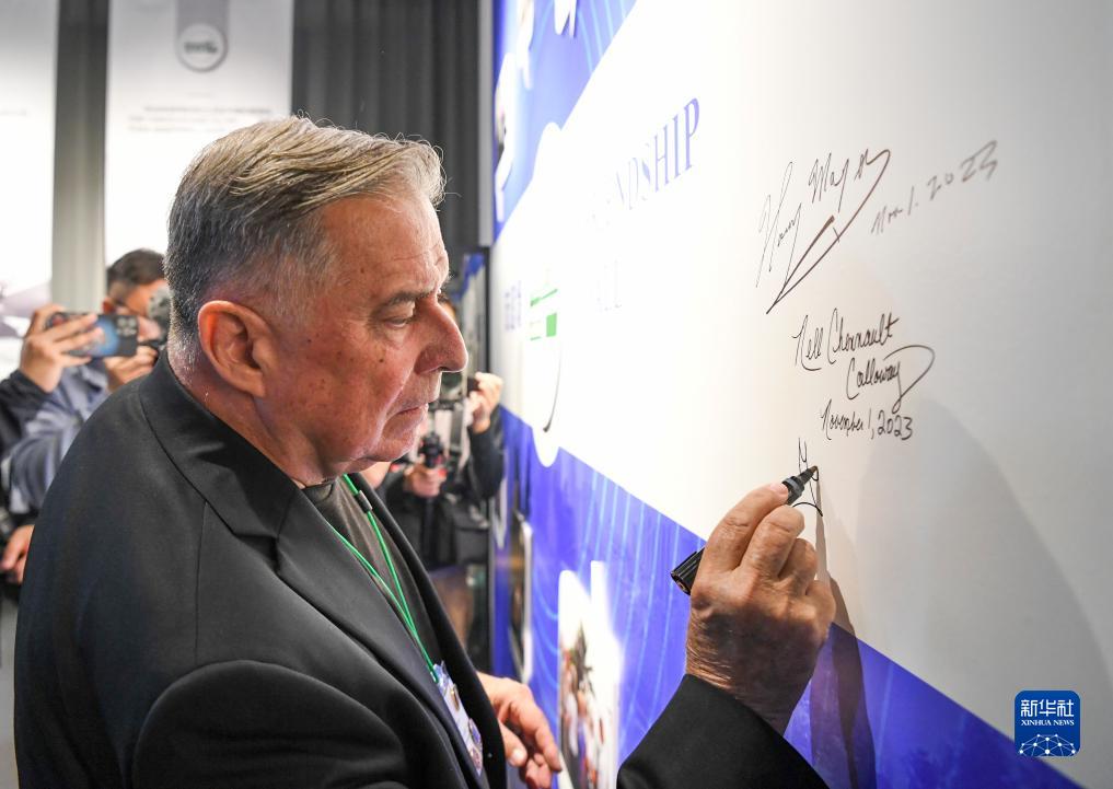 11月1日,美中航空遺產(chǎn)基金會主席格林在重慶史迪威博物館友誼墻上簽名。