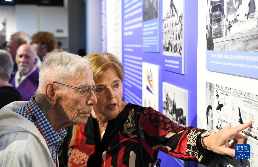 11月1日,飛虎隊老兵莫耶(前左)在重慶史迪威博物館參觀。