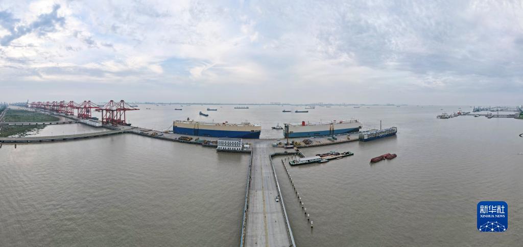 這是上海外高橋海通汽車碼頭(7月9日攝,無人機全景照片)。