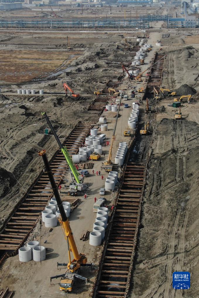11月1日拍攝的華錦阿美精細化工及原料工程項目施工現場(無人機照片)。