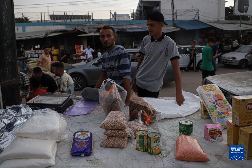 11月2日,人們站在加沙南部城市汗尤尼斯一處市場的貨物前。