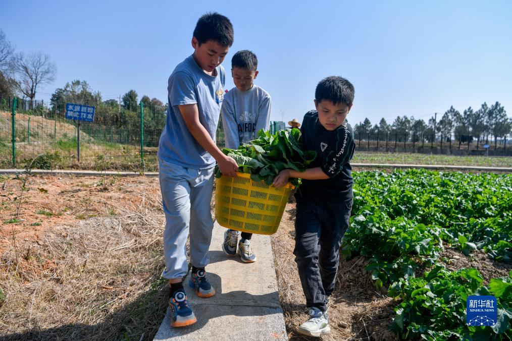 11月2日,在黃梅縣湯用彤學校思源校區,學生在種植園內上勞動課。