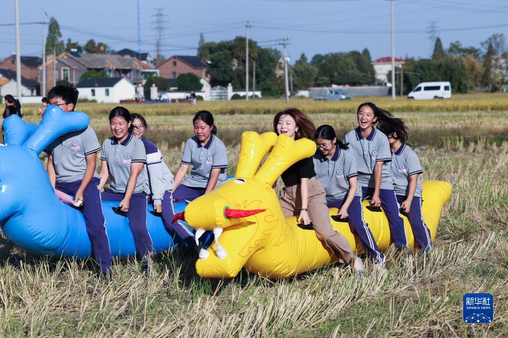 11月2日,浙江省杭州市余杭區徑山鎮前溪村舉行豐收節活動,現場展示了當地特產、美食、文創產品等,游客還能體驗南瓜保齡球、大鵝套圈、稻田拔河、割稻子等鄉間農趣活動。近年來,前溪村依托萬畝稻田發展智慧農業和鄉村特色文旅產業,走出一條“風景引流、共同富裕”的振興之路。
