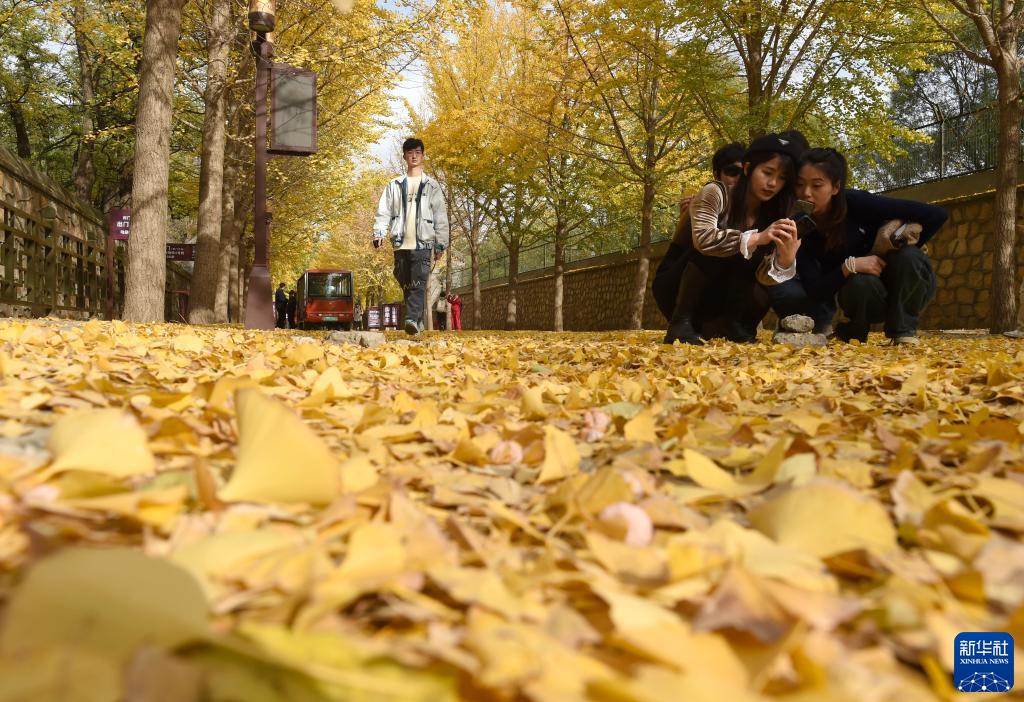 深秋時節,北京圓明園內層林盡染,園內種植的銀杏、白蠟樹、楓樹、槭樹、黃櫨等彩葉觀賞樹種,色彩斑斕,形成多個彩葉觀賞區,吸引眾多游客駐足觀賞、留影。