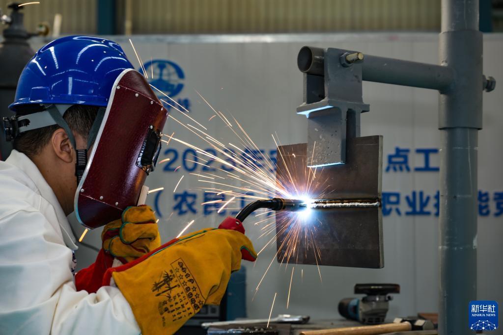 當日,2023年安徽省重點工程職工(農民工)電焊工職業技能競賽在合肥舉行,來自安徽省重點工程建設崗位上的40名青年焊接能手在比賽中各展絕活、比拼職業技能。