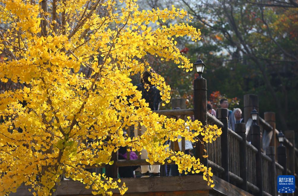 10月29日,游客在濟南市九如山風景區觀賞秋景。