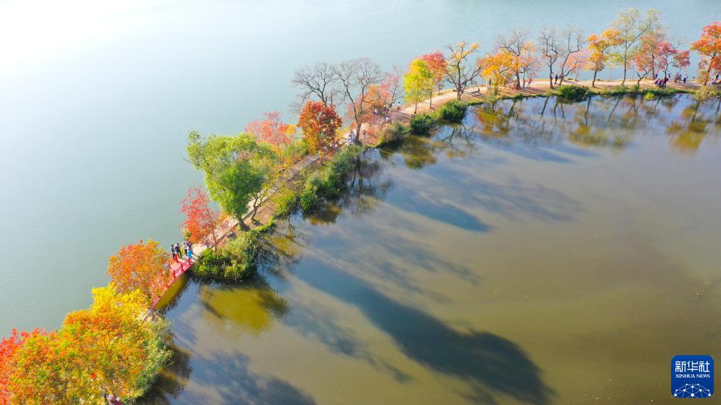 11月2日,游人在南京中山植物園觀賞秋景(無人機照片)。