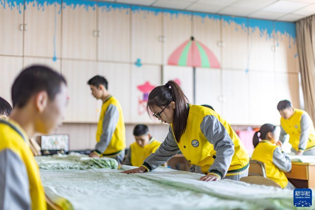 10月30日,在重慶市特殊教育中心的教室內,幾名六年級的視力障礙學生進行疊被子生活技能小比賽。
