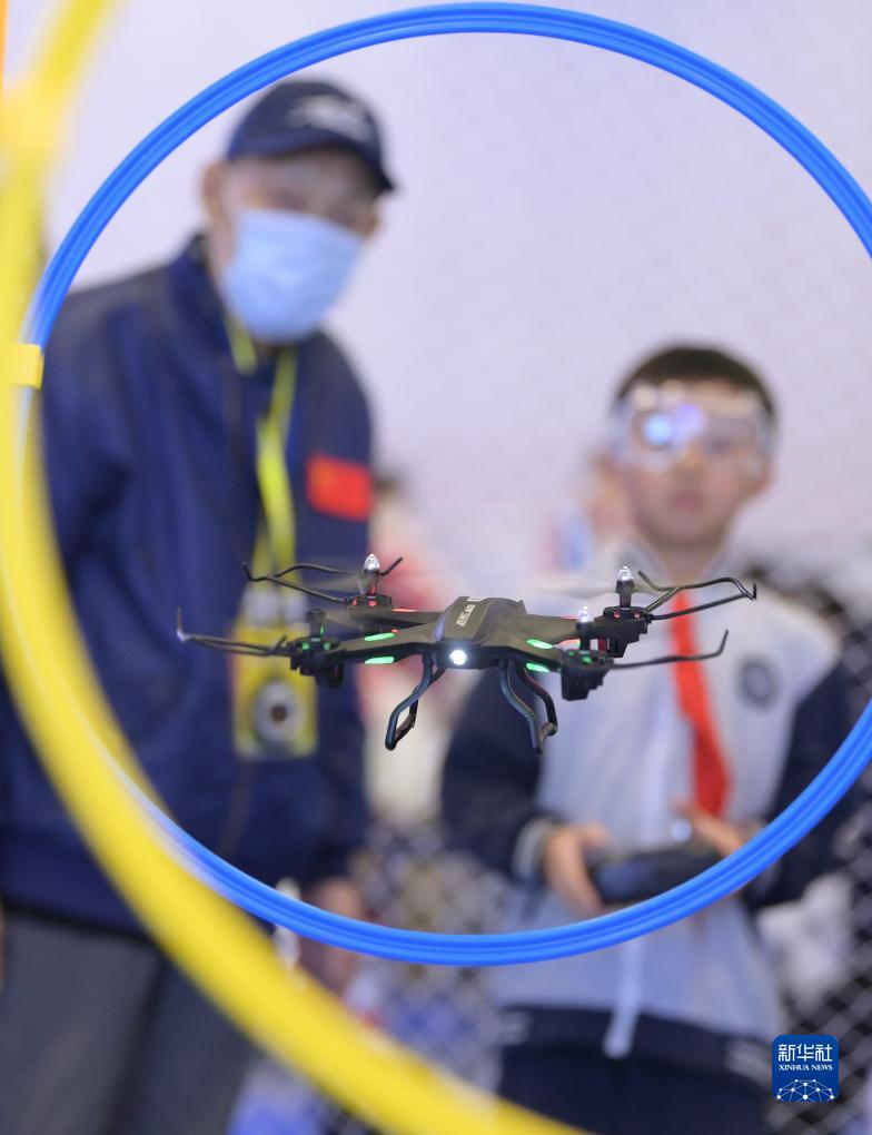 11月3日,學生在展會上參與青少年航空預備人才海選評測時進行無人機實操。