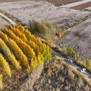 在新疆沙灣市,農機手駕駛采棉機在棉田中作業(10月27日攝,無人機照片)。