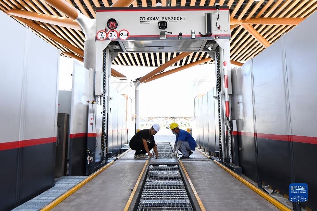 11月3日,工人在海口新海港和南港“二線口岸”(客運(yùn))客運(yùn)查驗(yàn)設(shè)施、設(shè)備建設(shè)項(xiàng)目上進(jìn)行調(diào)試安裝。