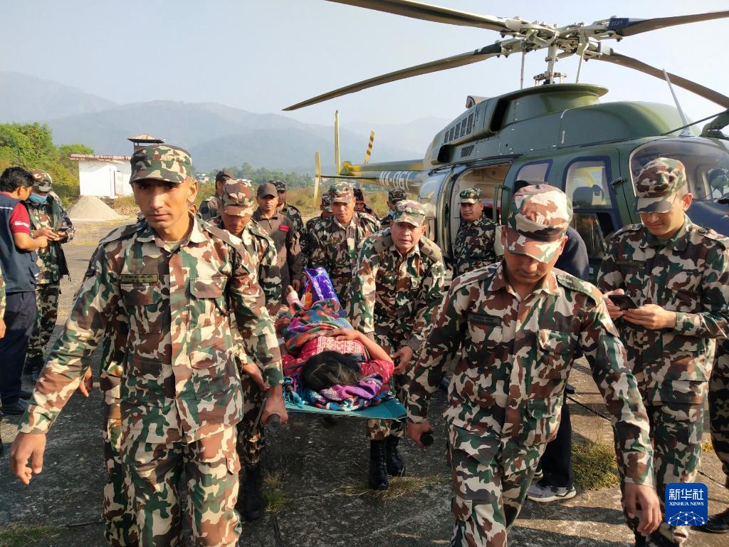 11月4日,尼泊爾軍方人員在尼泊爾西部扎澤爾果德參與救援行動。