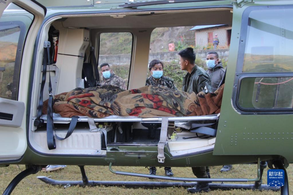 11月4日,尼泊爾軍方人員在尼泊爾西部扎澤爾果德參與救援行動。